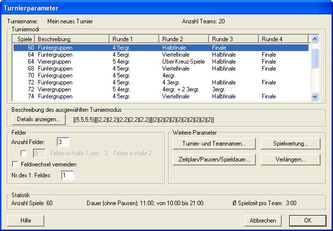 festgelegt werden kann(Pausen, Länge der Spiele etc.).