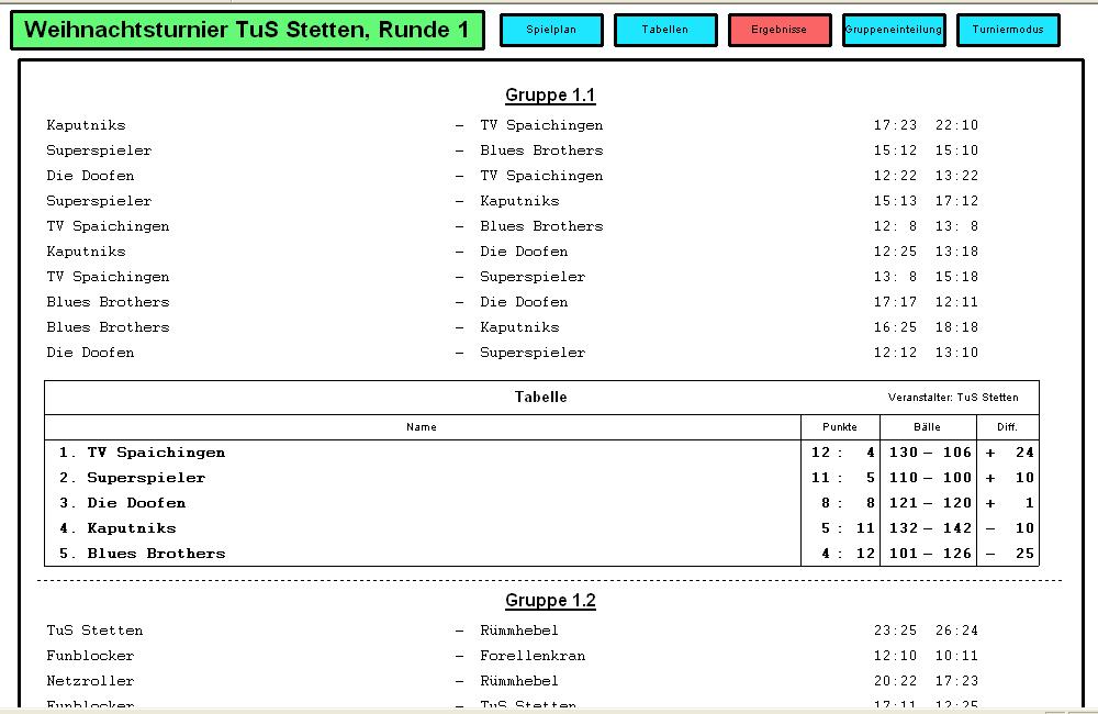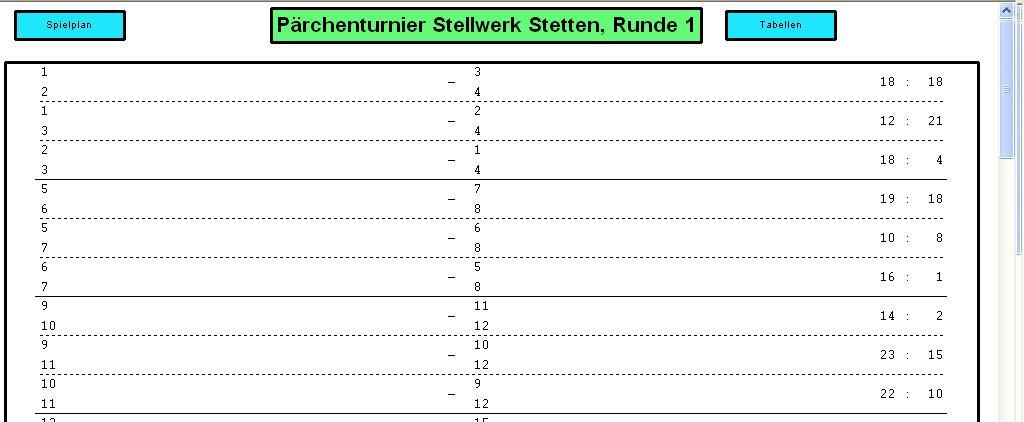 Bei Standardturnieren kann wie im Anzeigemodus 'Spielplan' durch Mausklick auf ein Spiel das Spielergebnis eingegeben werden.