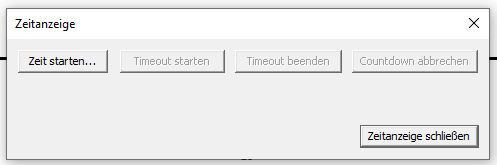 Die Zeitanzeige wird über den Menübefehl 'Spezial->Zeitanzeige öffnen' geöffnet. Sie dient dazu, die noch verbleibende Zeit bis zu einem bestimmten Zeitpunkt (z.B. Spielende, Halbzeit) in Form eines Countdowns anzuzeigen. Außerdem wird bei Zeitablauf ein akustisches Signal ausgegeben.