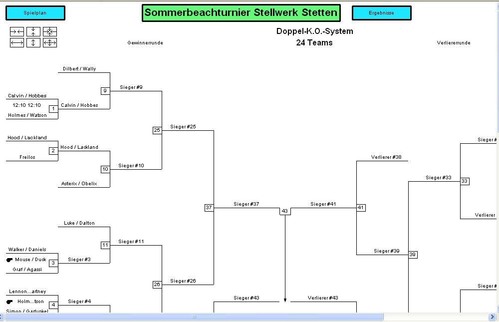 In dieser Ansicht wird der Turnierablauf schematisch dargestellt. Durch Mausklick in die Skalierungssymbole